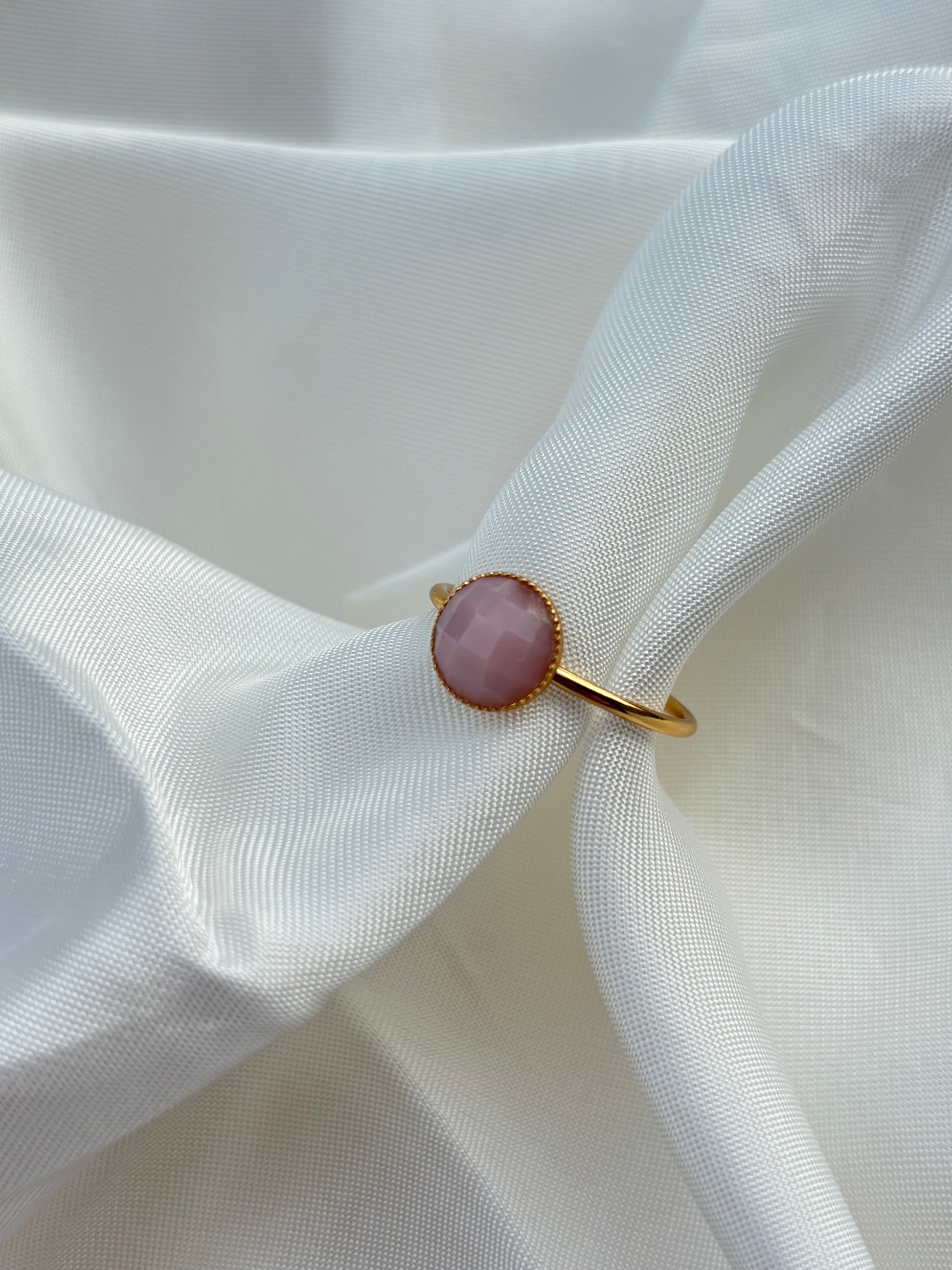 Anello regolabile in ottone placcato oro 18k 3 micron con pietre di opale rosa da 8mm.