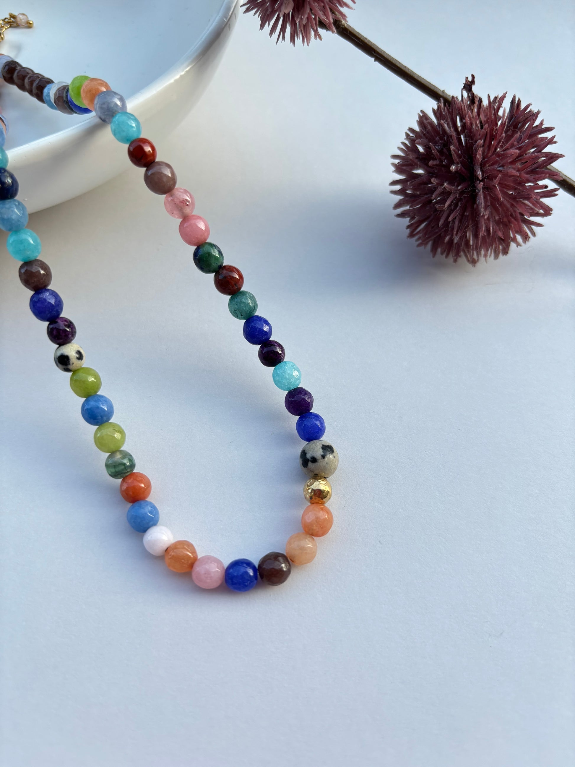 Collana Giada realizzata con pietre di Giada multicolore 6mm e pietre di diaspro dalmata 6mm 4mm.