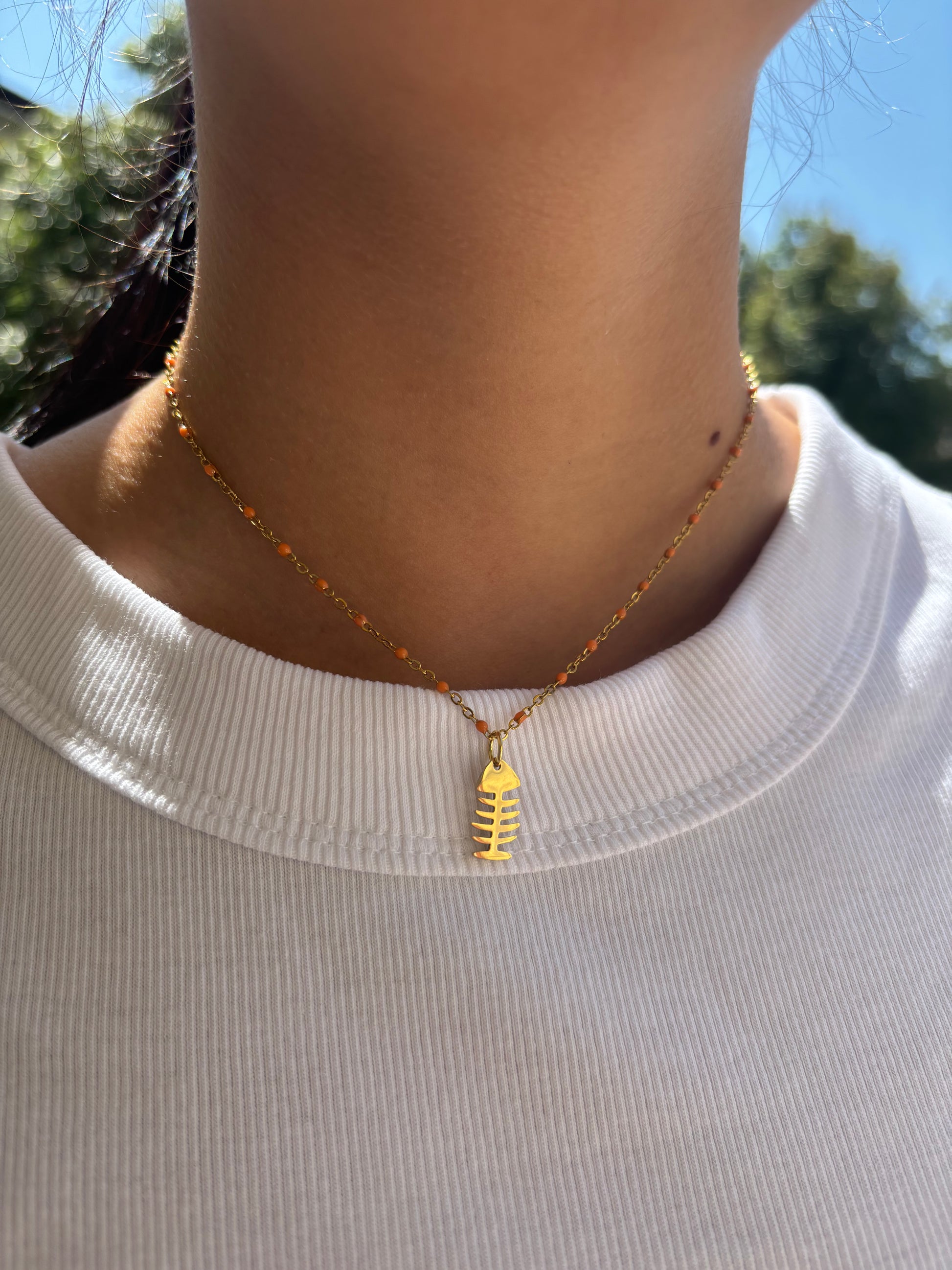 Collana Gipsy charms realizzata in acciaio inossidabile placcato oro palline colorate smaltate.