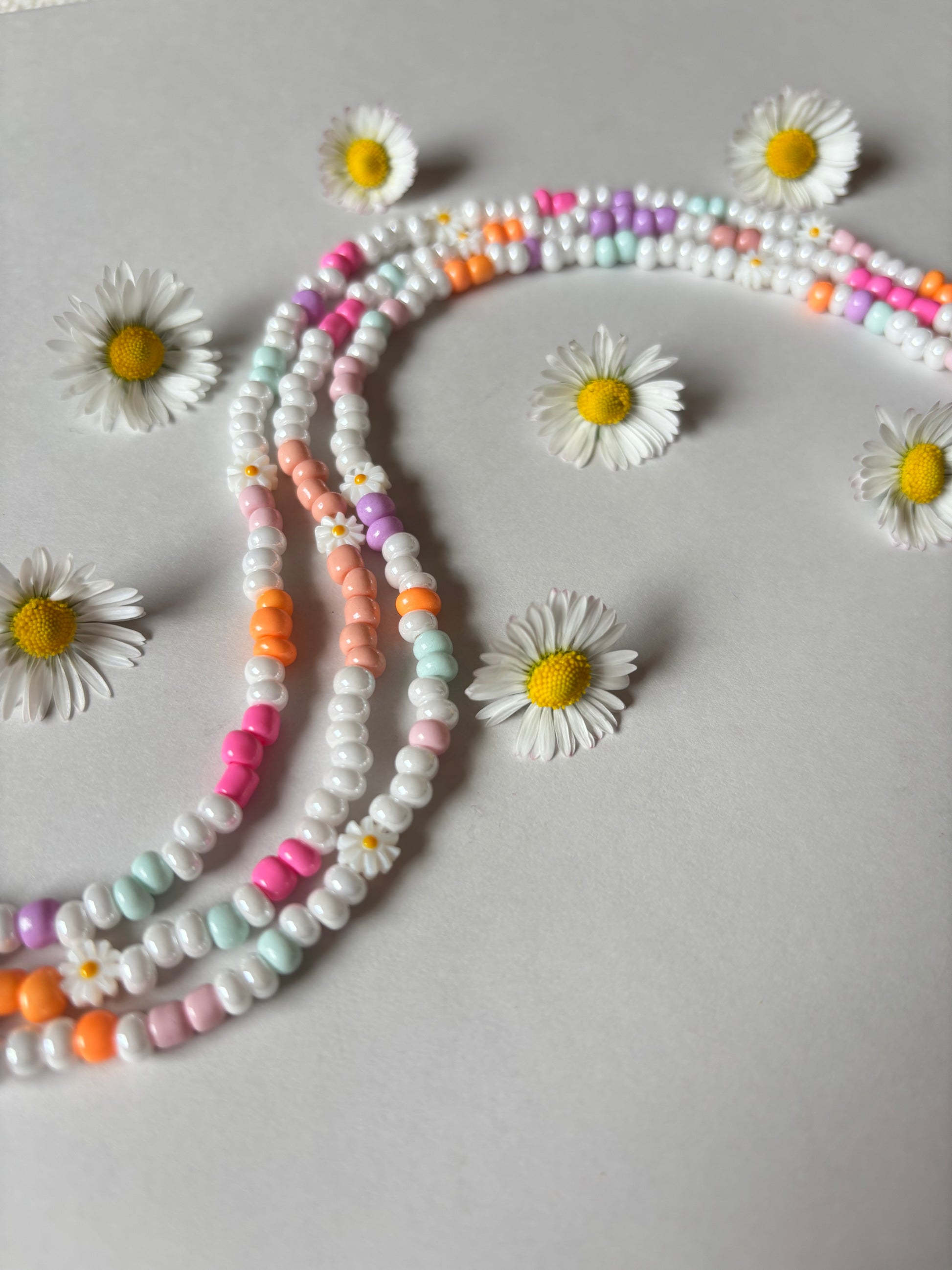 "Ogni collana è un pezzo unico, creata con cura e passione utilizzando un mix di colori pastello”