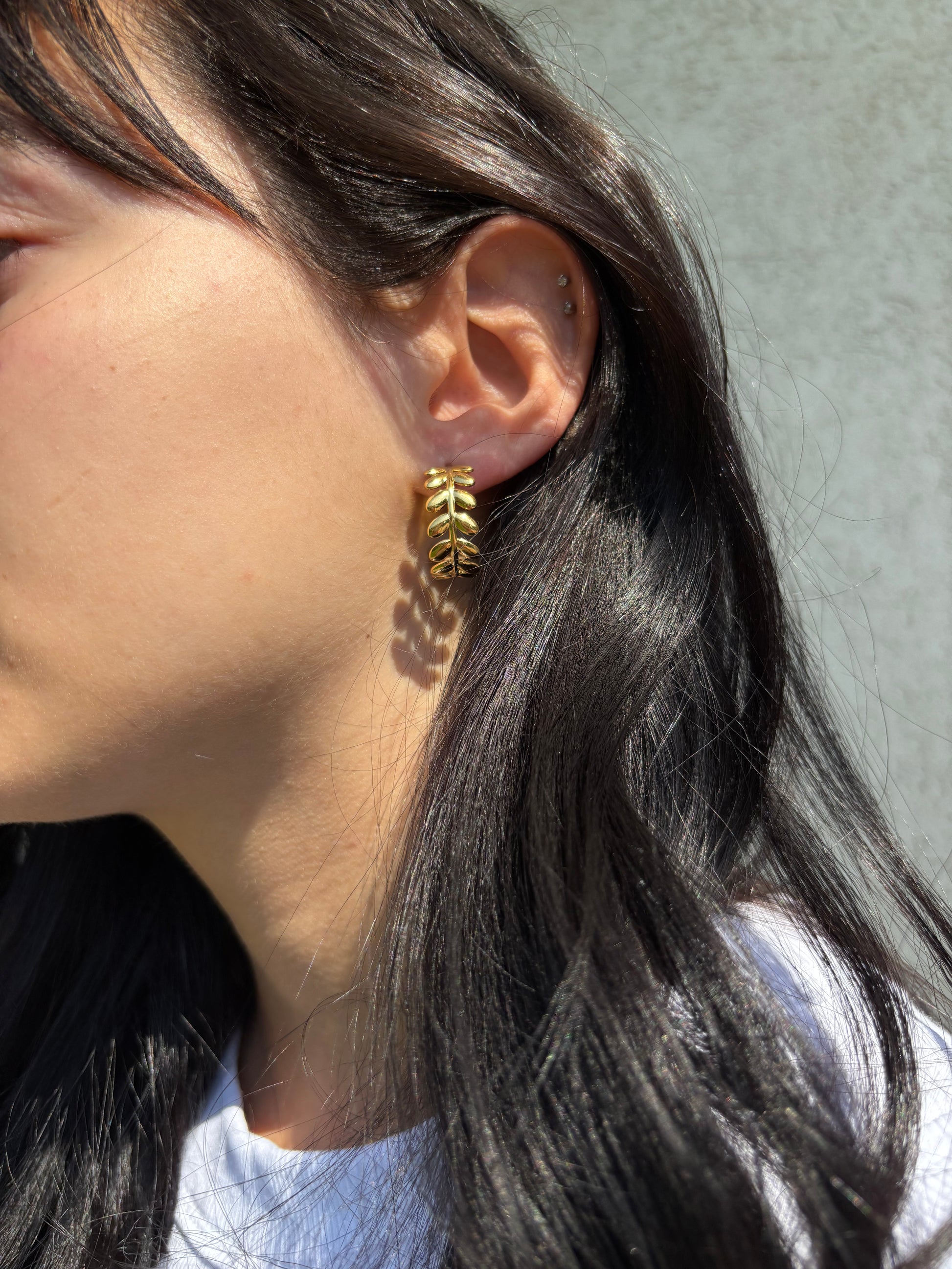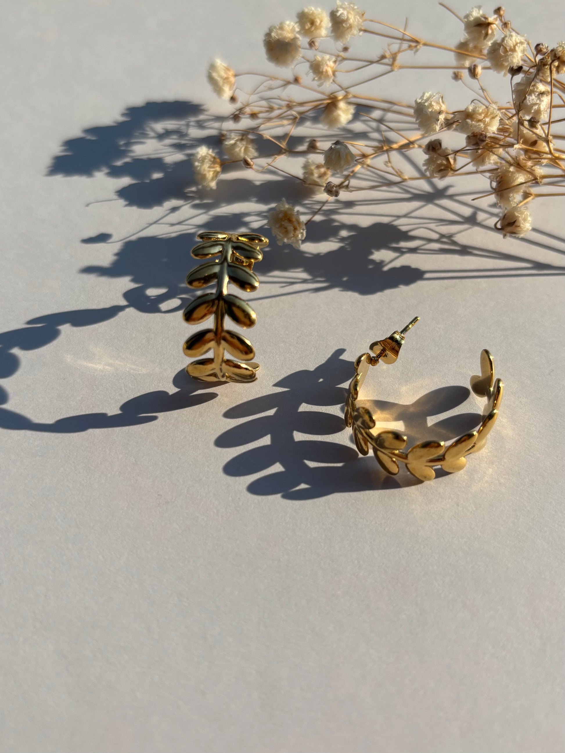 Orecchini a cerchio con foglie in acciaio inossidabile 304 placcato oro.