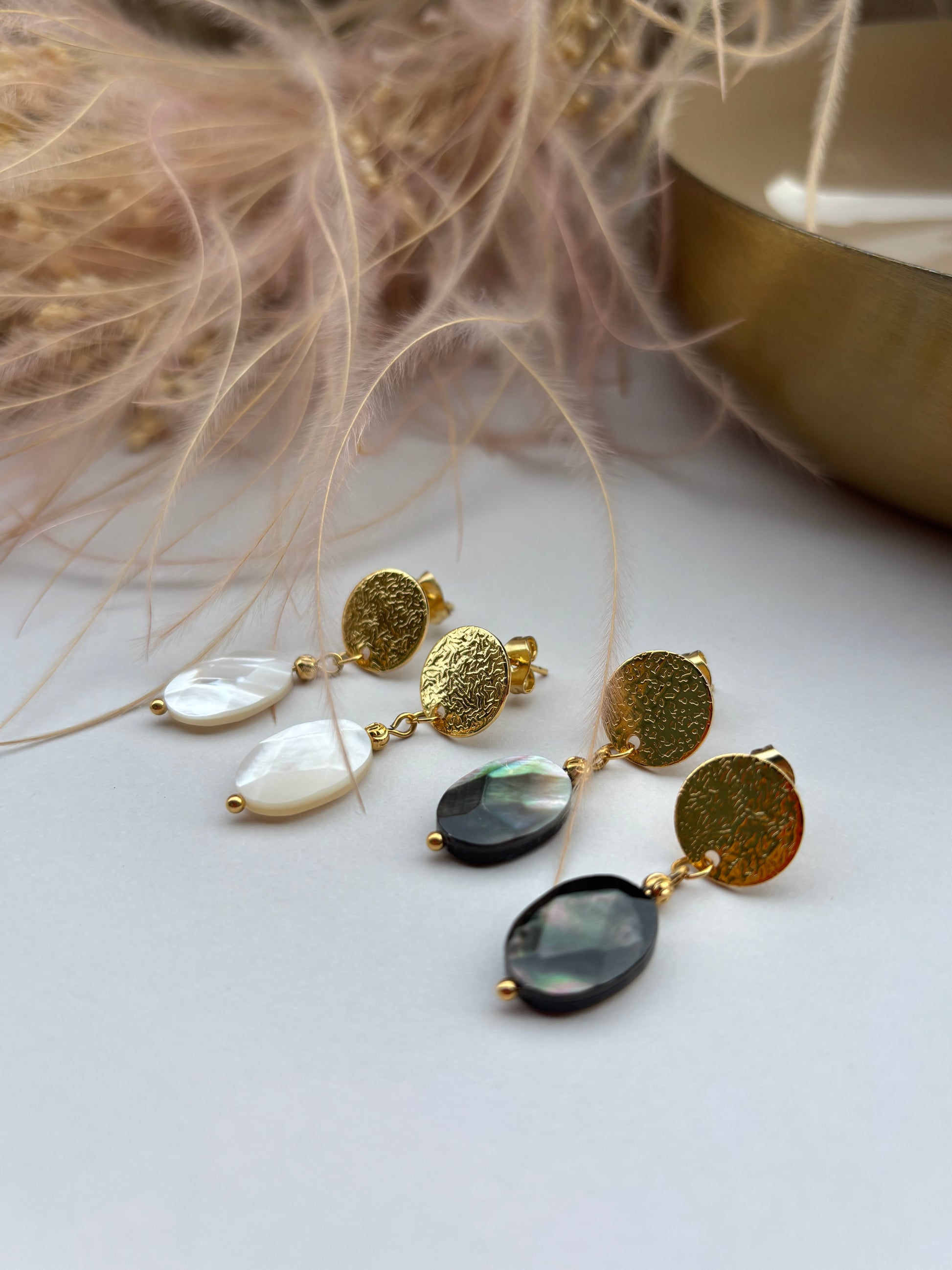 Realizzati in acciaio inossidabile placcato oro e madreperla sfaccettata,disponibile bianca o nera.