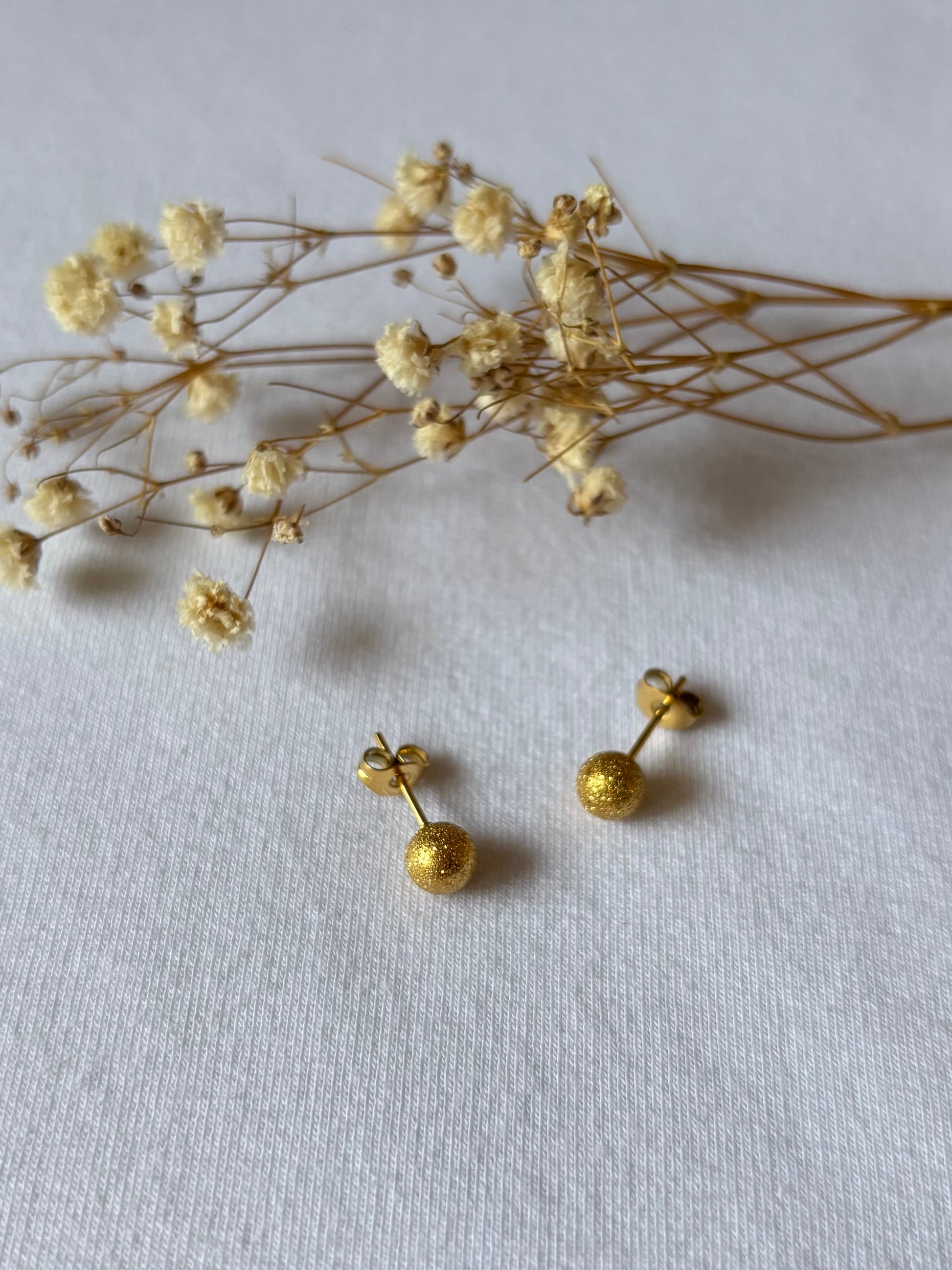 Orecchini a bottone con sfere scintillanti in acciaio inossidabile placcato oro.
